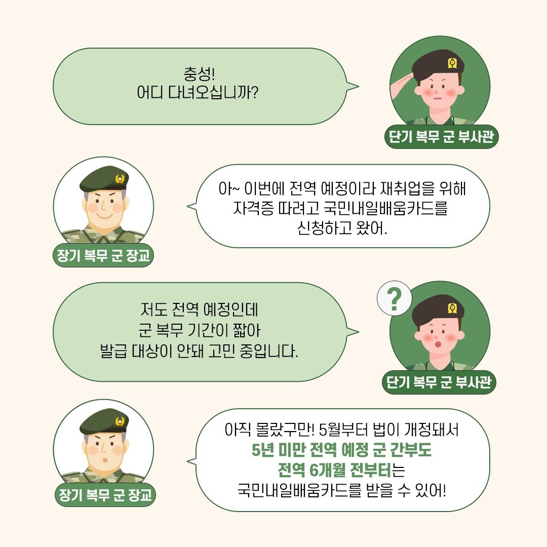 국민내일배움카드, 5년 미만 단기복무 군 간부 발급 가능
