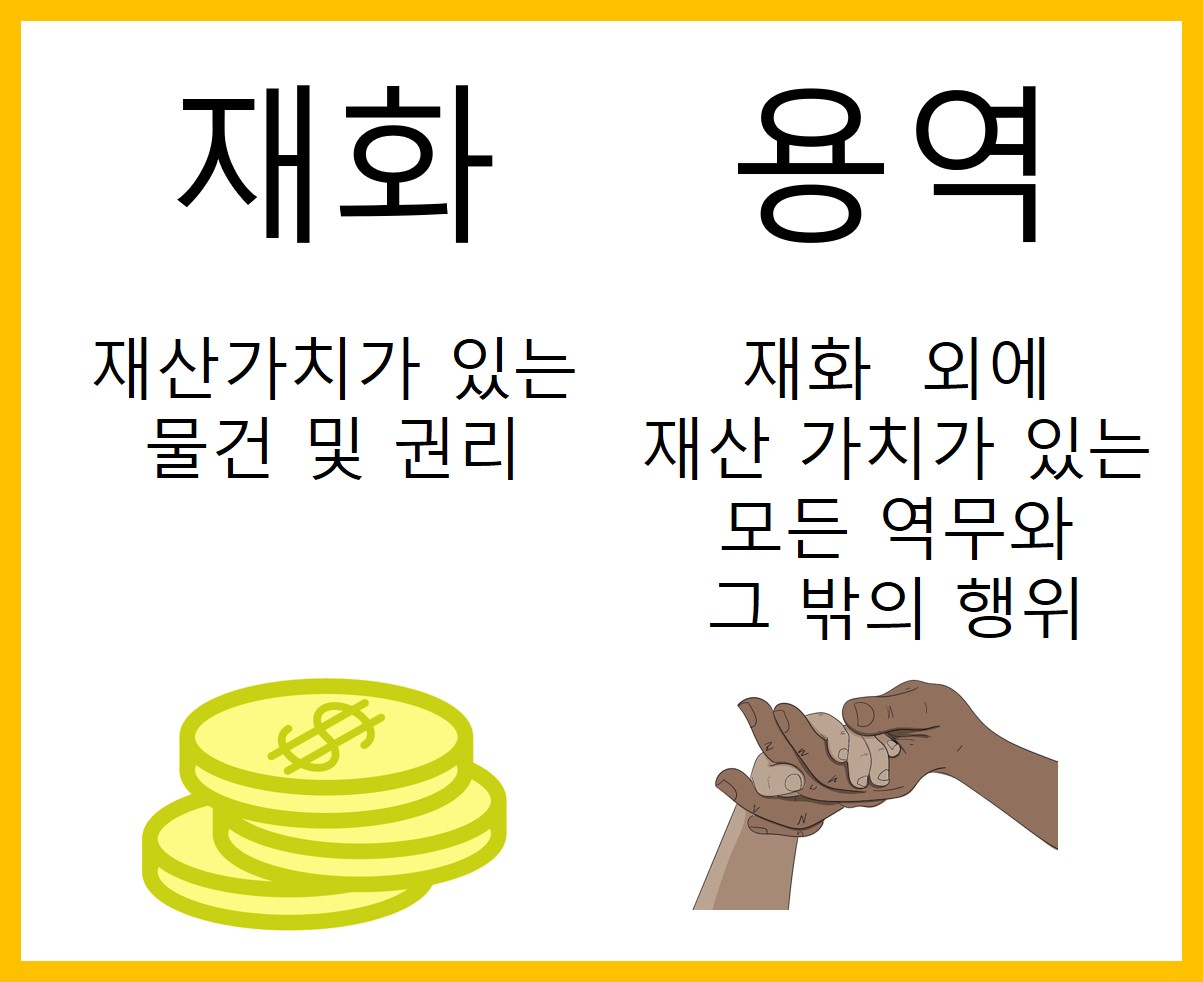부가가치세법을 짧게 공부하는 도중에 부가가치세 과대 대상이 사업자가 행하는 재화 또는 용역의 공급, 재화의 수입입니다. 여기서 재화와 용역에 대한 정의가 궁금했고, "부가가치세법 제2조(정의)"에서 재화와 용역에 대한 정의도 나옵니다.