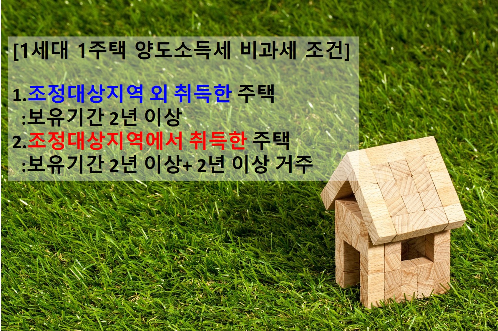 따라서 1세대 1주택 양도소득세 비과세 조건은 큰 혜택이기 때문에 간단하게 정리해봅니다.