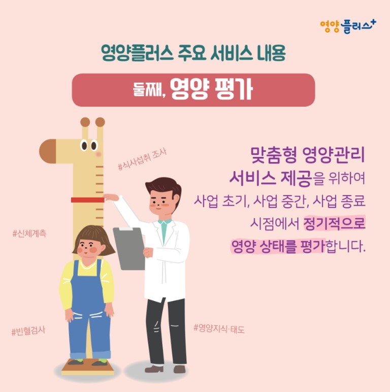 - 자격서류 제출(주민등록등본, 건강 · 장기요양보험 납입영수증 등), 영양위험요인평가(혈액검사, 신체검사,