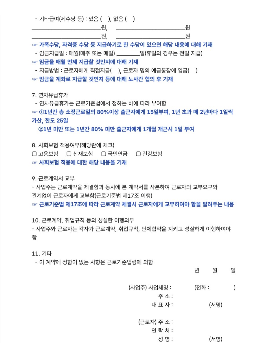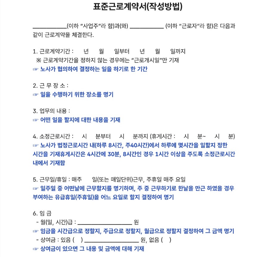 | 근로계약서 필수적으로 작성해야할 내용(표준근로계약서 첨부) (0) | 2025.01.07 |