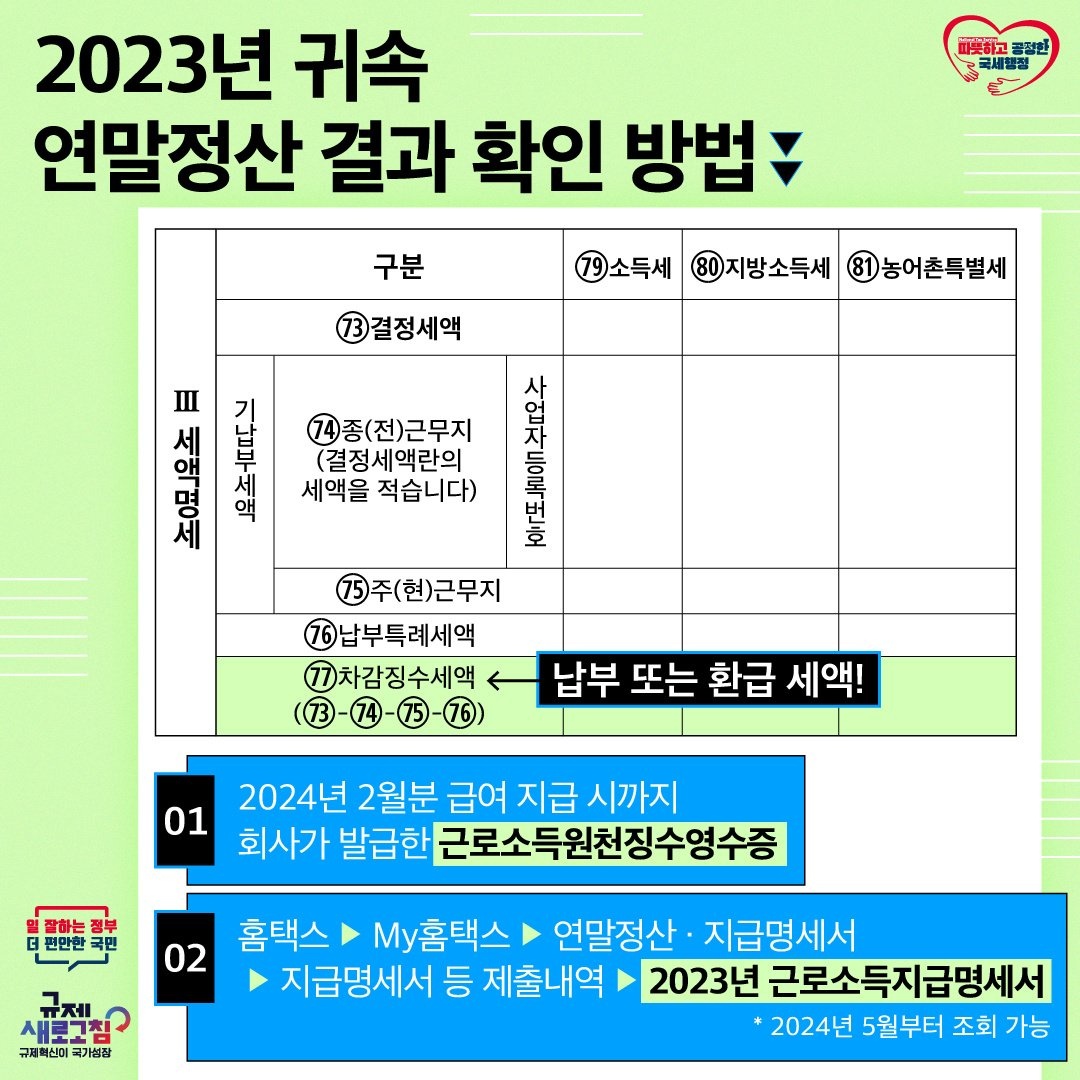 2023년 귀속 연말정산 결과 확인방법은 다음과 같습니다.