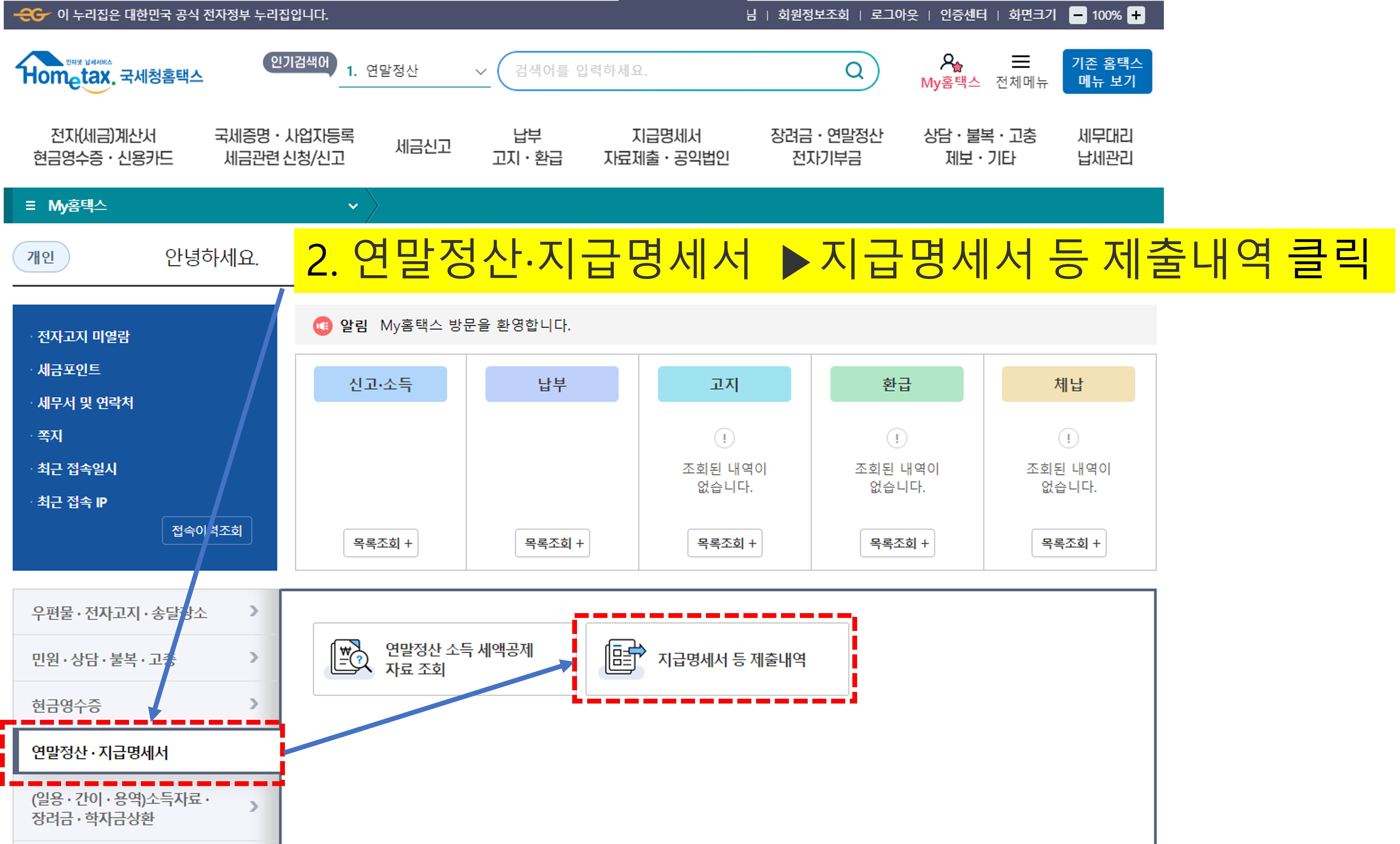 두번째는 국세청 홈택스를 통헤 확인할 수 있습니다.